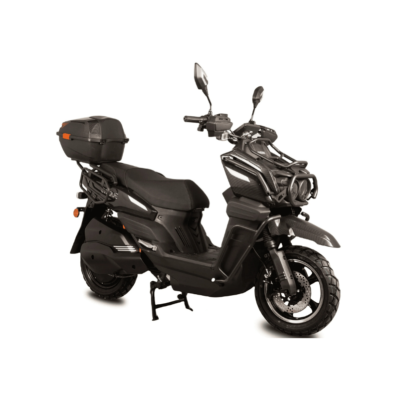 Evoque Tactical Electric Scooter—engineered to crush every path with uncompromising power, rugged durability, and peak performance. Whether you’re carving through busy streets or blazing new trails off-road, this 72V powerhouse won’t back down. Its fortified frame, aggressive tread tires, and cutting-edge tech make the Evoque Tactical your go-to ride for conquering any terrain in style.